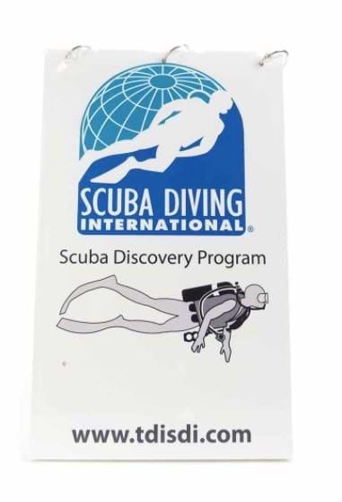 The SDI Scuba Discovery Slate is a required item when teaching the Scuba Discovery Program if the student has not completed eLearning. This slate is designed to be used poolside when doing the academic component of this course with a diver.