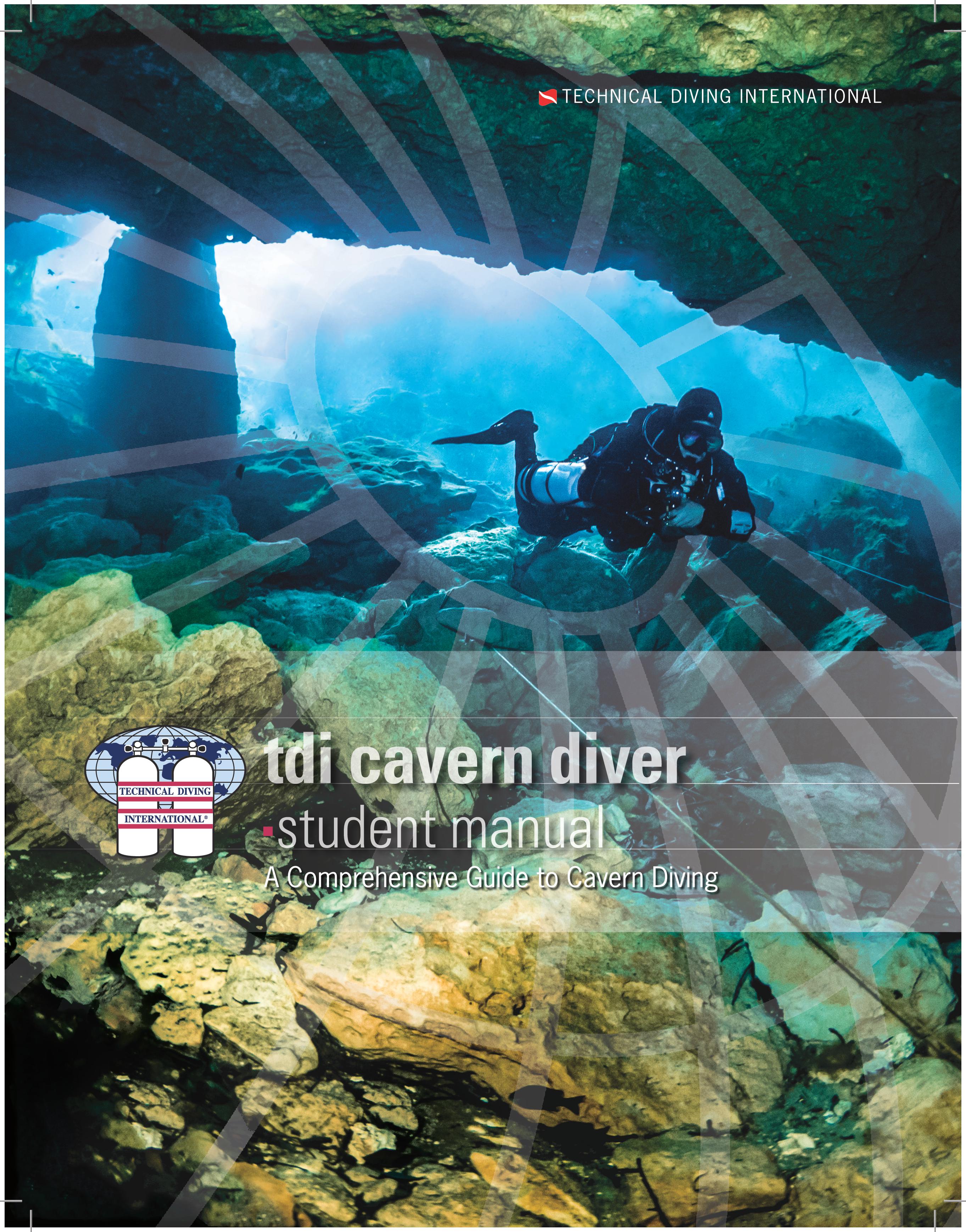 The TDI Cavern Diver Manual is the text-book literary assistant to the TDI Cavern Diver certification course. This manual will serve as your reference tool as you proceed through TDI Cavern Diver training. The TDI Cavern Diver program has been carefully crafted to teach cavern diving specific practices and procedures. Dives incorporating rebreathers or gases other than air require additional training.