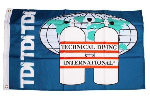 This item features the Technical Diving International agency logo, and has been grommetted to provide easy installation. The dimensions for this item are: 4' x 6' (1.2M x 1.8M). *Colours may vary