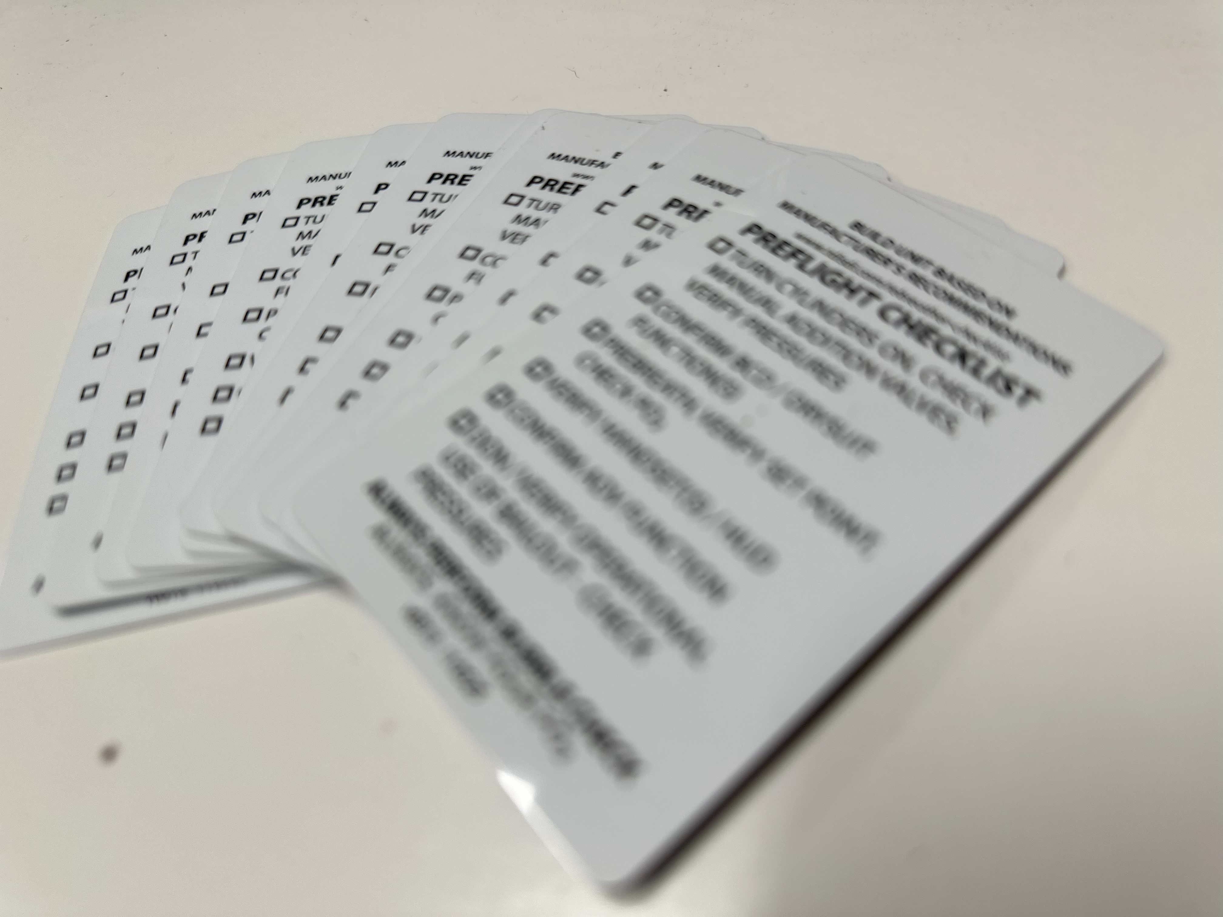 The TDI CCR Preflight Checklist holds the essential standardized steps that must be completed for safety on a rebreather directly before entering the water. After assembling a rebreather based on the manufacturer’s recommendations using their check list, the rebreather may sit turned off while in transit to the dive site. This “preflight check list” adds a short sequence to go through in order to make sure necessary components of the unit are on and functioning directly before entering the water. The TDI CCR Preflight Checklist can increase diver safety by making sure the user does not skip vital steps before entering the water. The TDI CCR Preflight Checklist is printed on a TDI Diver Cert Card and is hole punched so it can be tied directly to your gear for ease of use.